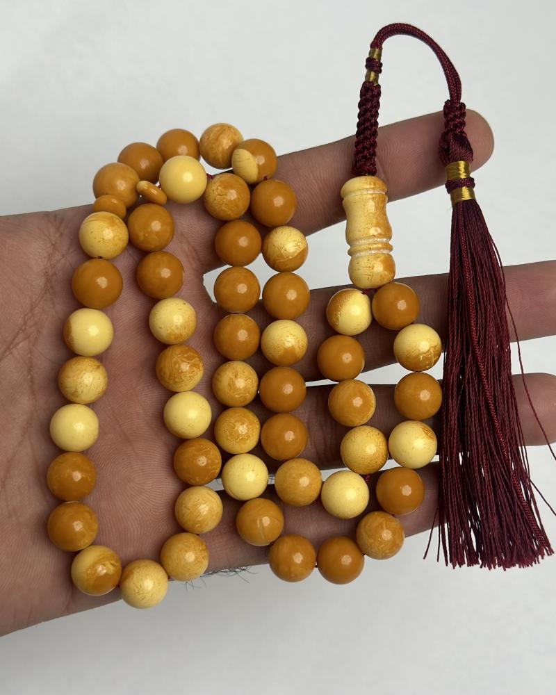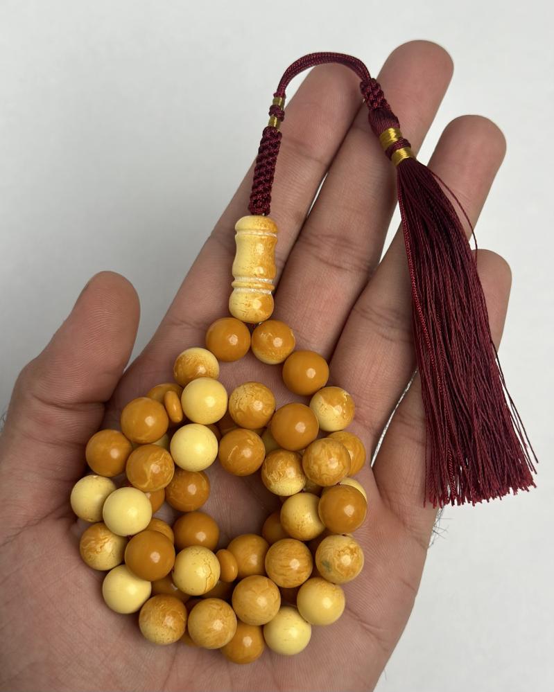 مسباح تراب كهرمان يتميز برائحته الفواحه الليمونيه قصة دائرية قمة الفخامة والأناقة مسباح مميز للاستخدام اليومي مع الكركوشة ذات التفصال اليدوي.