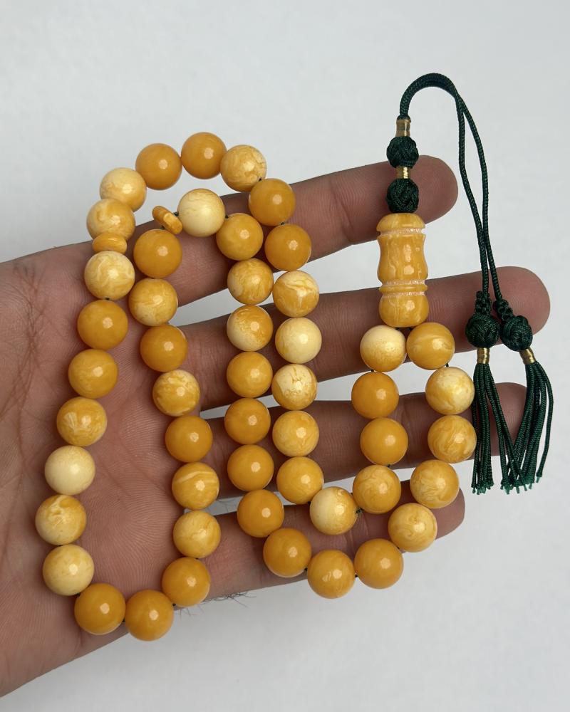 مسباح تراب كهرمان يتميز برائحته الفواحه الليمونيه قصة دائرية قمة الفخامة والأناقة مسباح مميز للاستخدام اليومي مع الكركوشة ذات التفصال اليدوي.