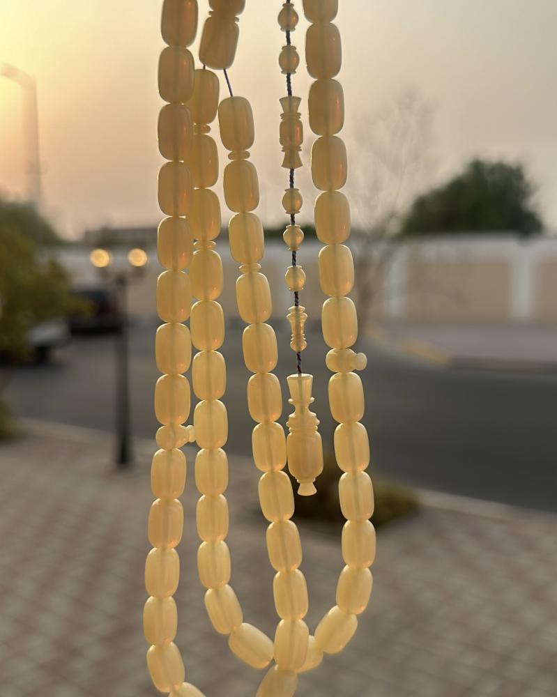 مسباح من مكعبات دومنة بلون مميز لؤلؤي شفافية وانعكاس احمر
